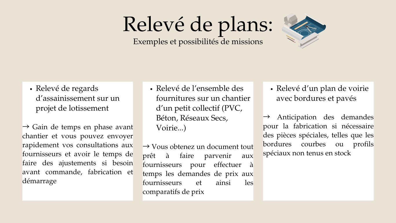Relevé de fournitures sur plan